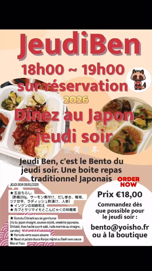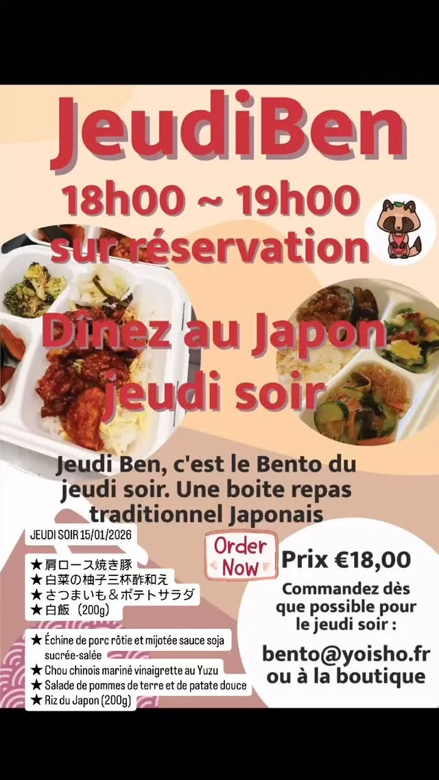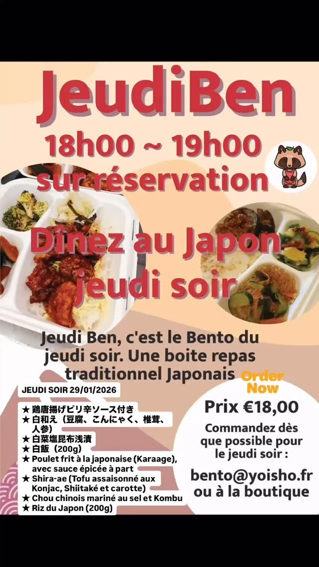 Le Bento est à reserver le plus tot possible (au plus tard la veille) et à récupérer entre 18h00 à 19h00.