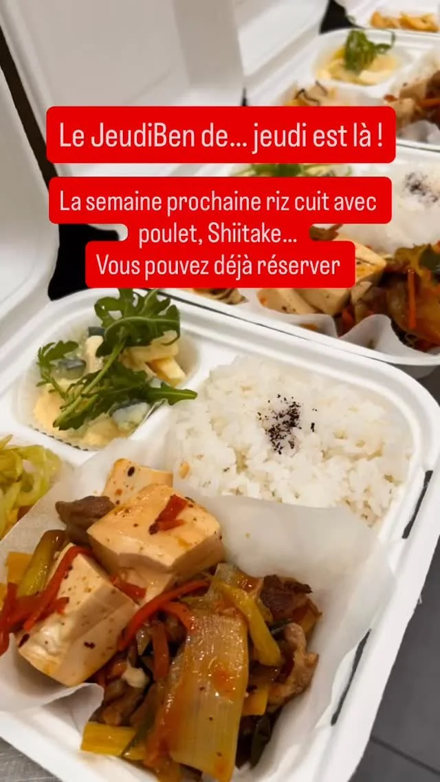 Les Bento sont à réserver le plus tôt possible (au plus tard la veille) et à récupérer entre 18h00 à 19h00 le jeudi.