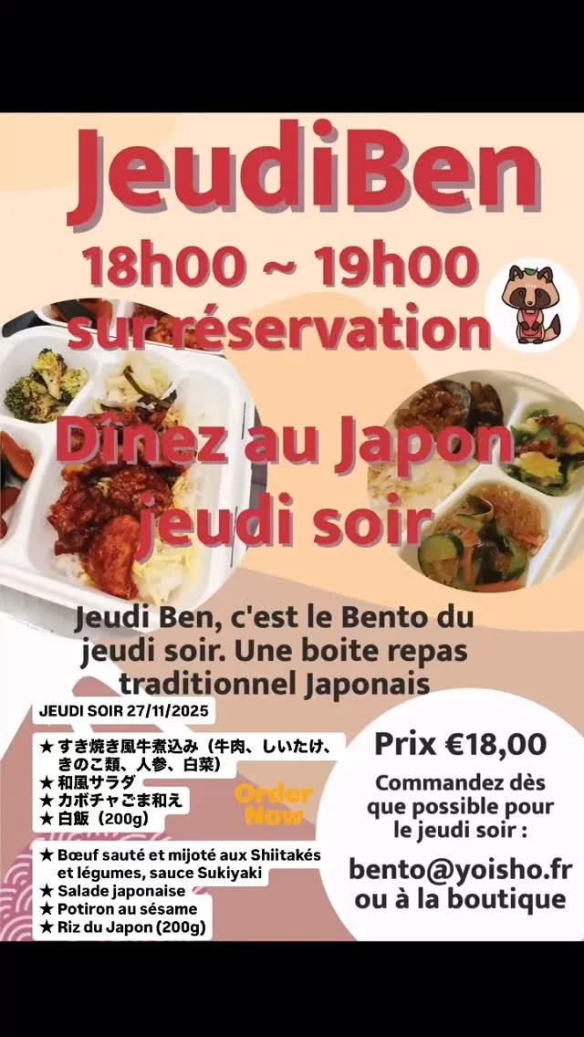 Le Bento est à reserver le plus tot possible (au plus tard la veille) et à récupérer entre 18h00 à 19h00